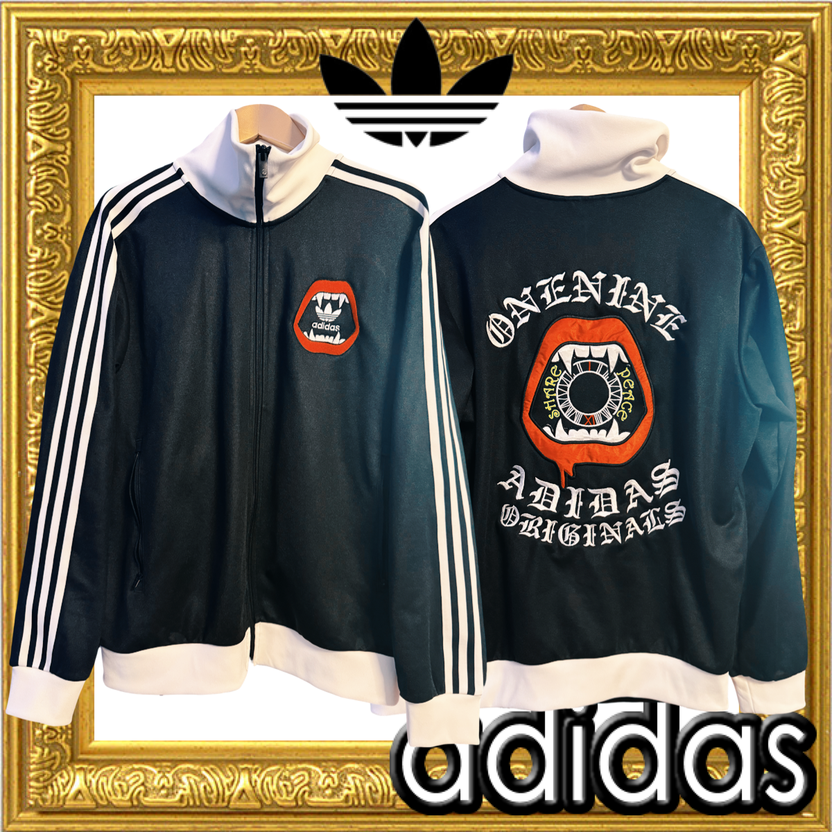adidasの名作「Beckenbauer トラックジャケット」をベースに、フロントとバックへ大胆な刺繍カスタムを施しました。