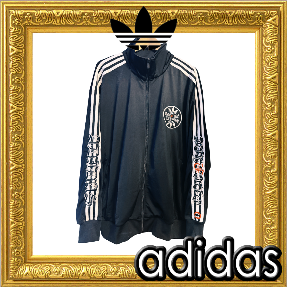 クラシックな adidas トラックジャケット をベースに、ブランド ONENINE の独自の世界観を刺繍で融合させました。