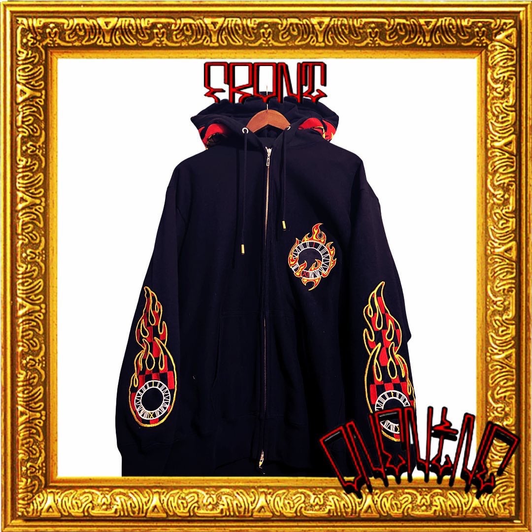 袖と胸にもオリジナルファイヤーパターンを付けております。