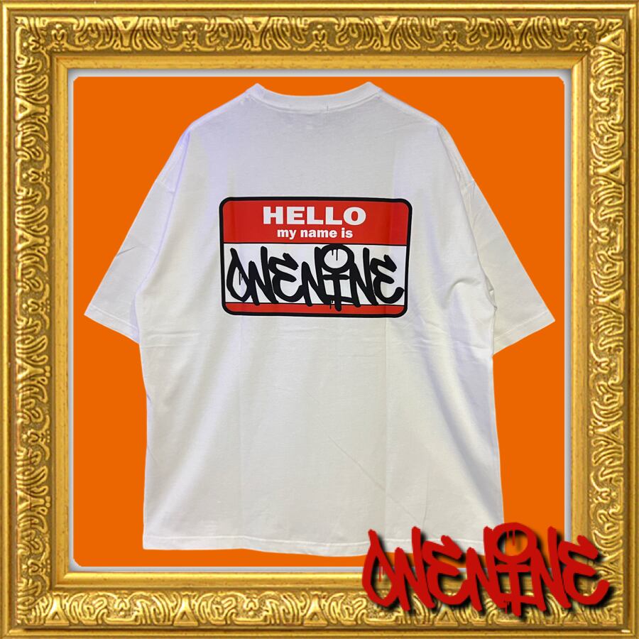 Hello my name is T(White✕Orange)は、ステッカー風のロゴが斬新なTシャツです。シンプルな白地に、ポップでカラフルな文字が目を引くデザインは、どんなコーディネートにも遊び心をプラスしてくれます。ルーズなシルエットは、体のラインを拾わずに着やすく、快適な着心地を提供してくれます。